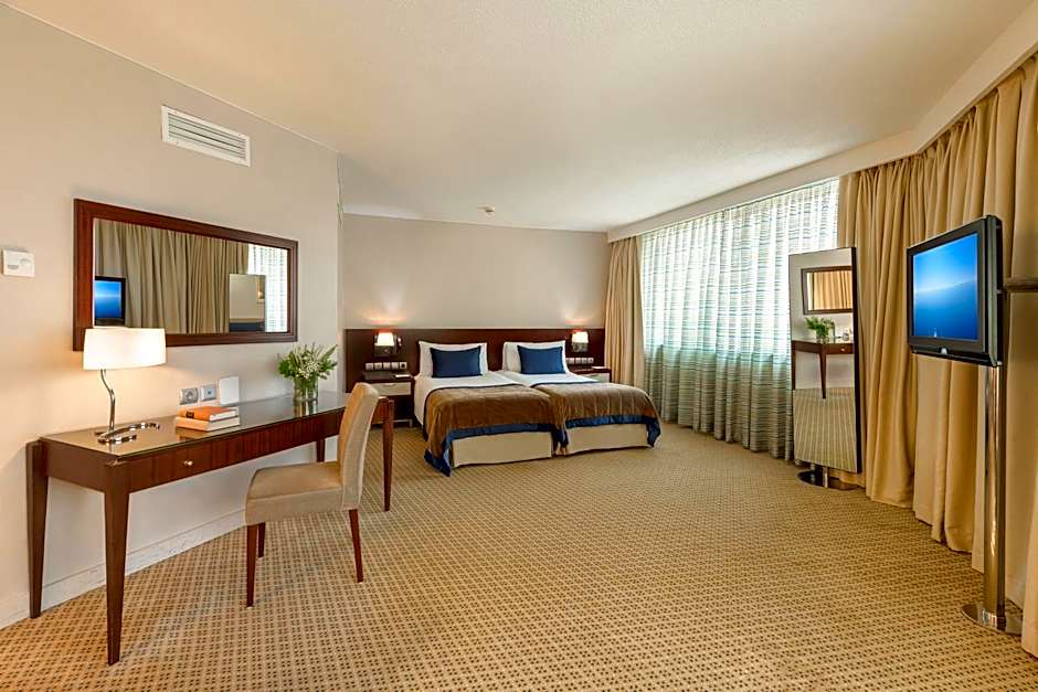 Providing free toiletries and bathrobes, this twin room includes a private bathroom with a bath, a shower and a bidet. The spacious air-conditioned twin room provides a TV with cable channels, soundproof walls, a mini-bar, a tea and coffee maker as well as city views. The unit offers 2 beds.